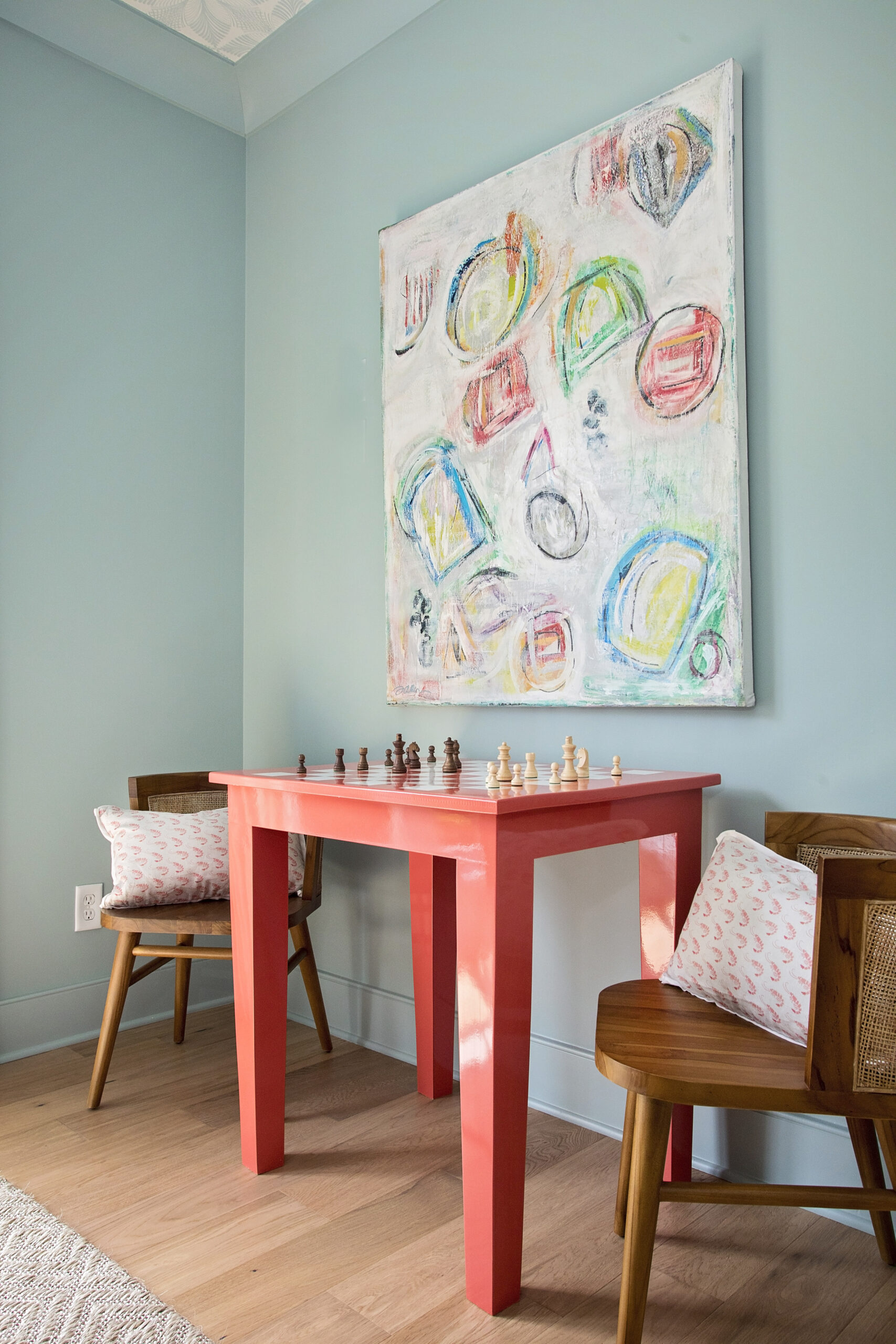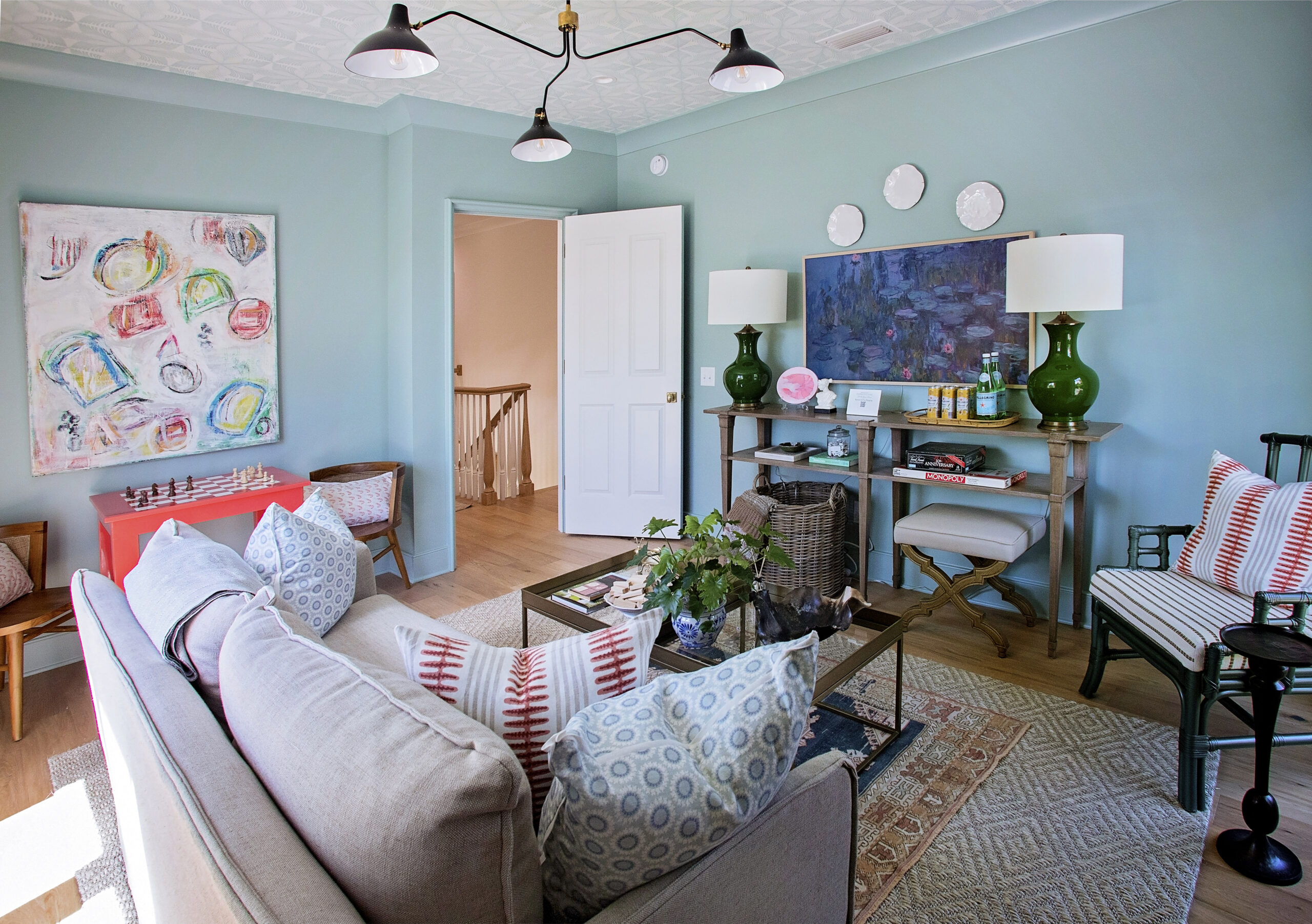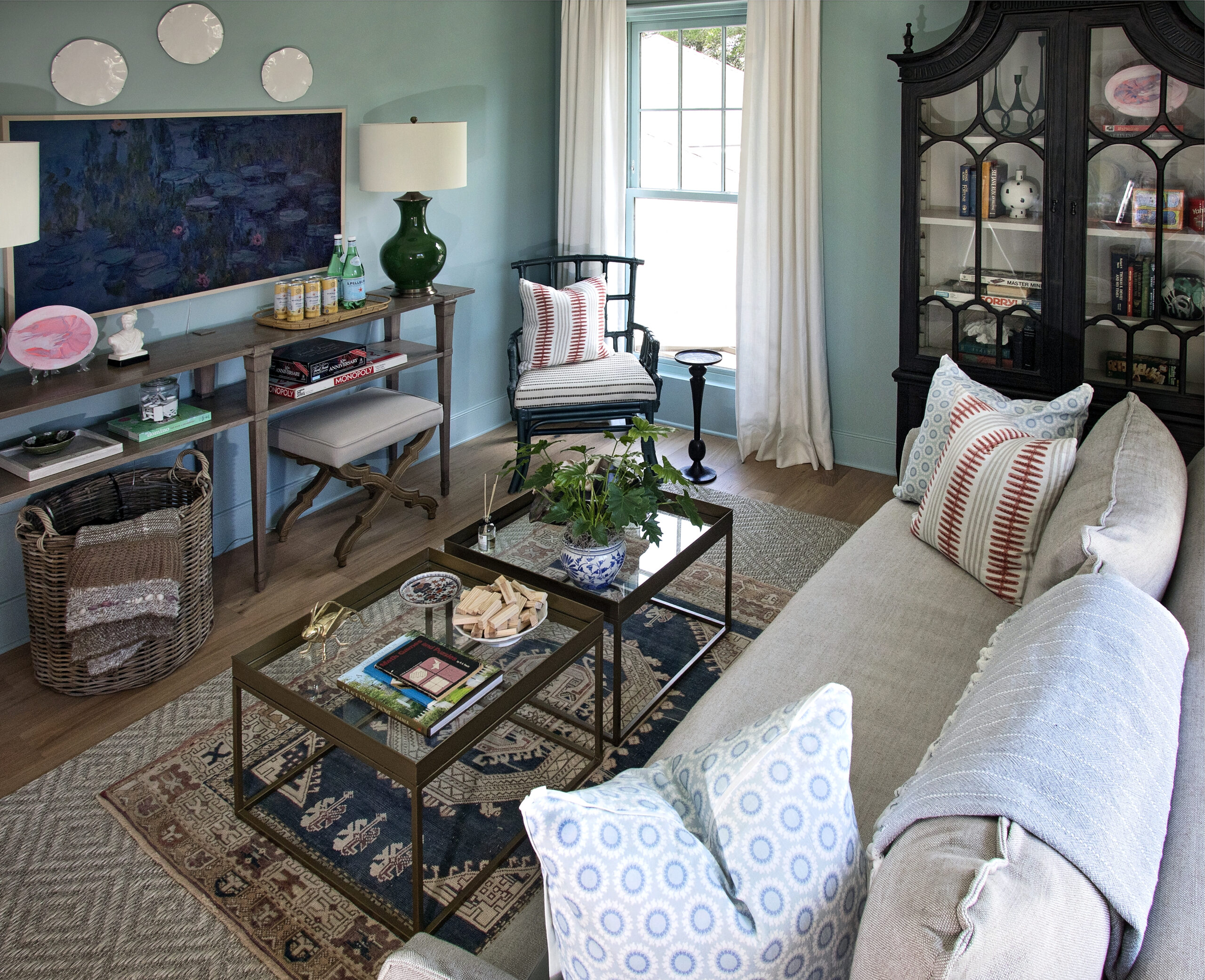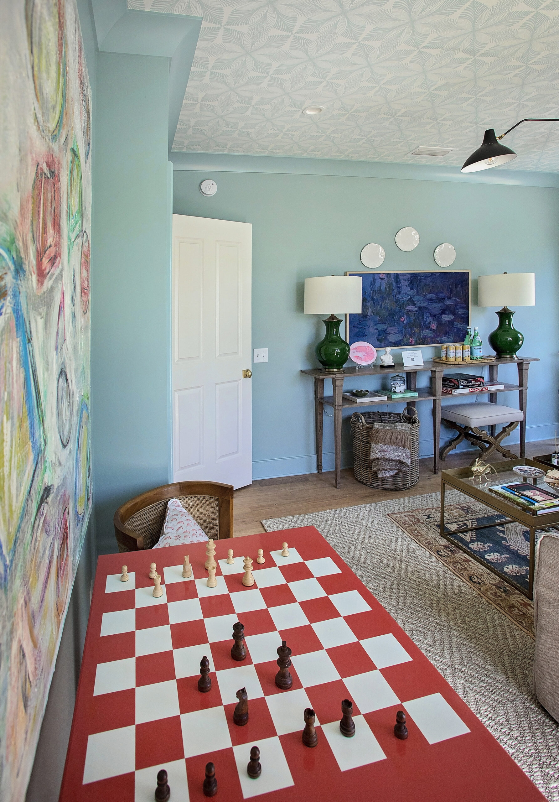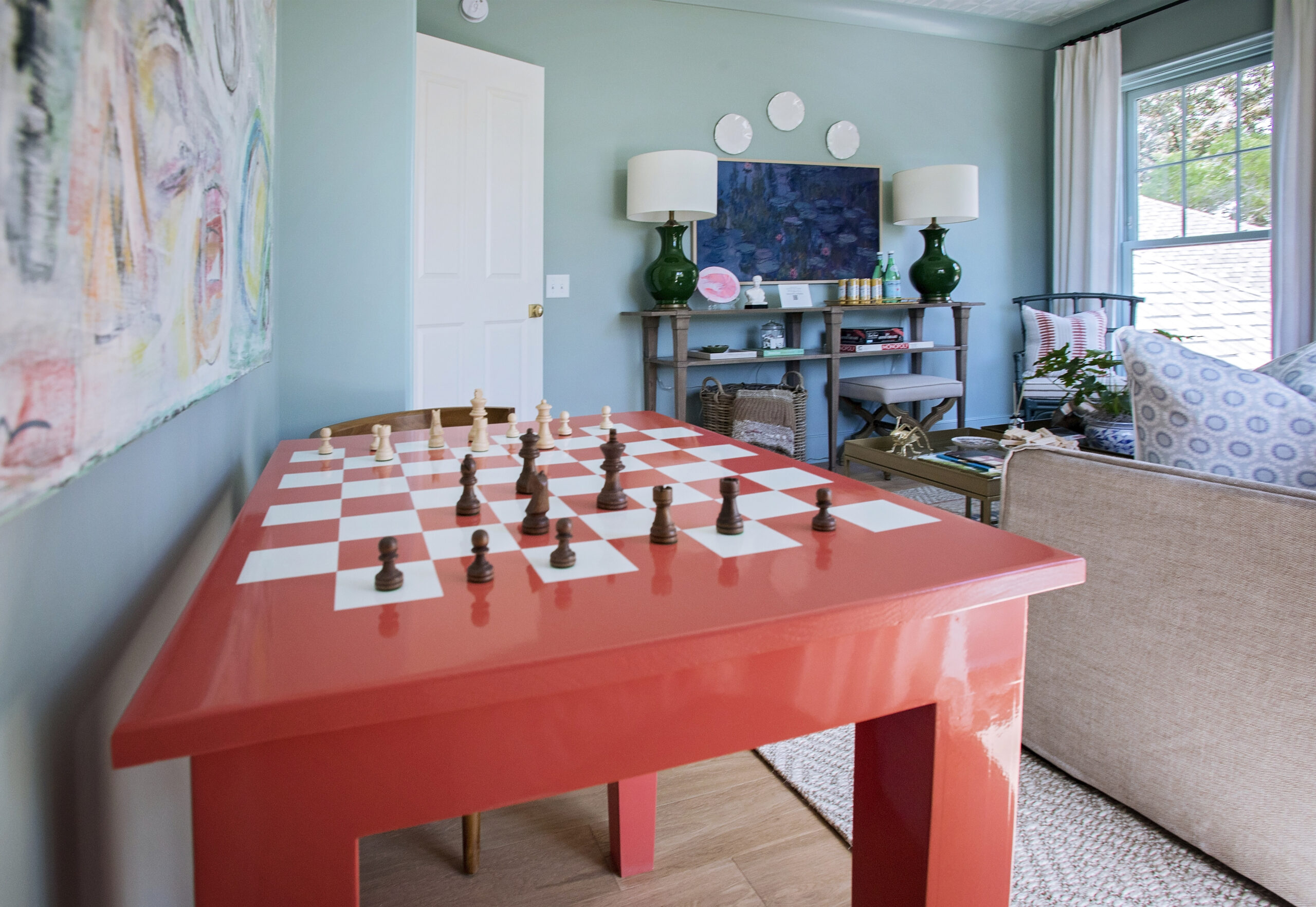 A fun space outside of my traditional staging roll, this room was inspired by the owner’s request to be able to watch football games. The home was built as a gathering space in a central location for his spread out family, so I wanted to include some fun elements for games to be played, memories to be made, and football to be watched.