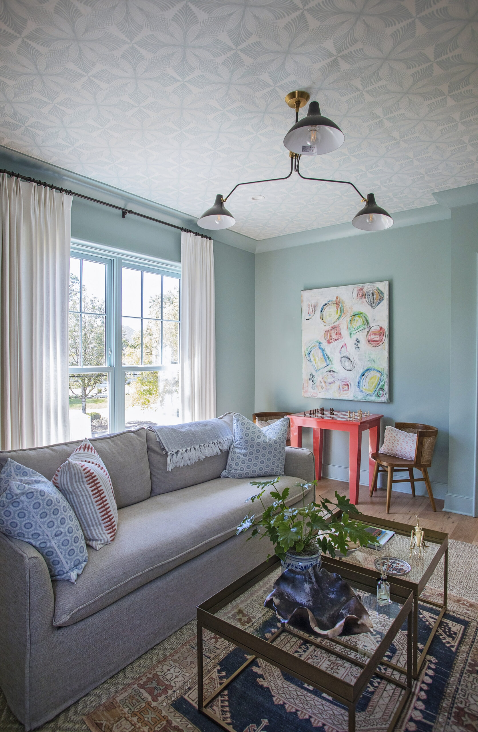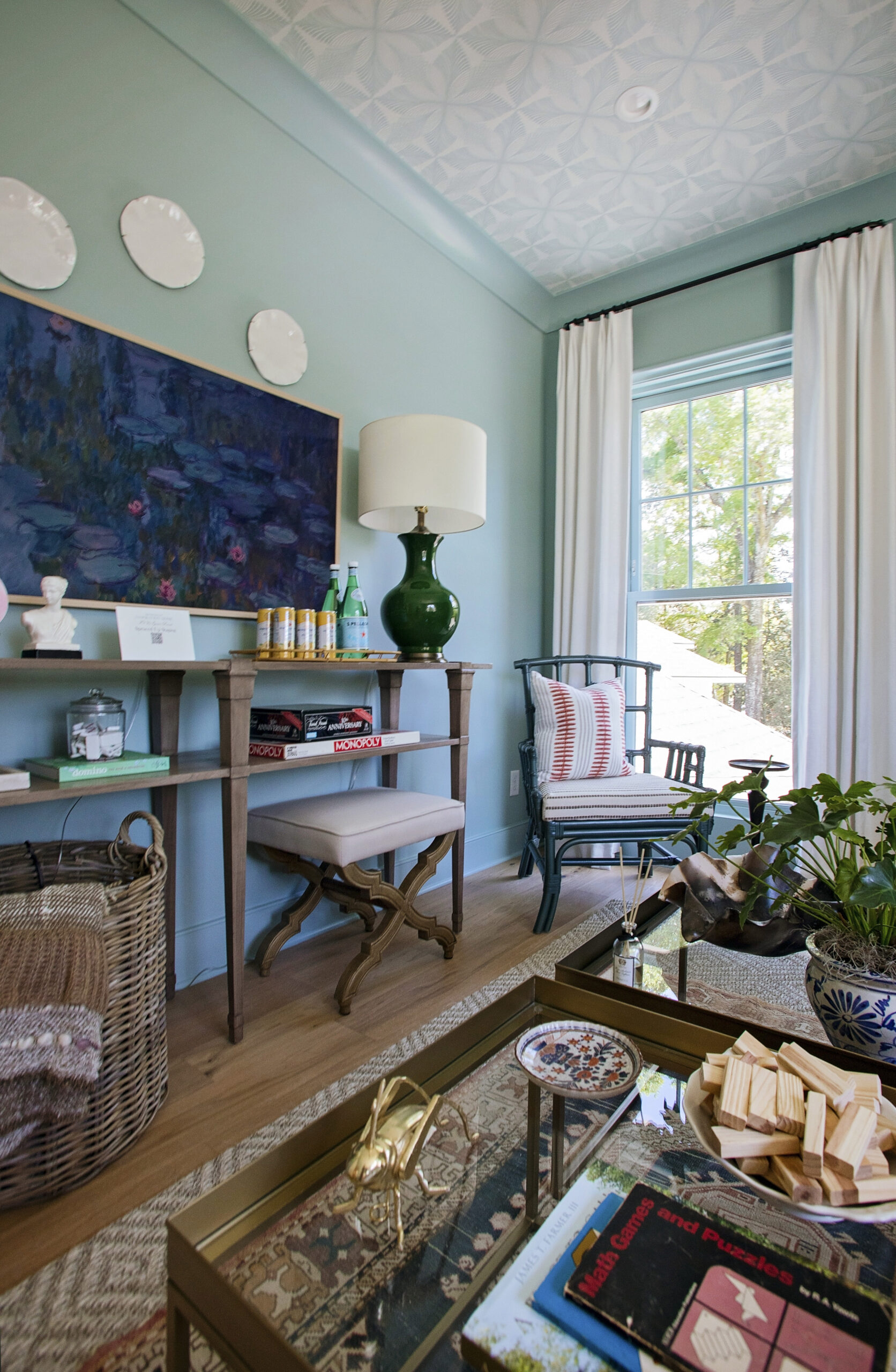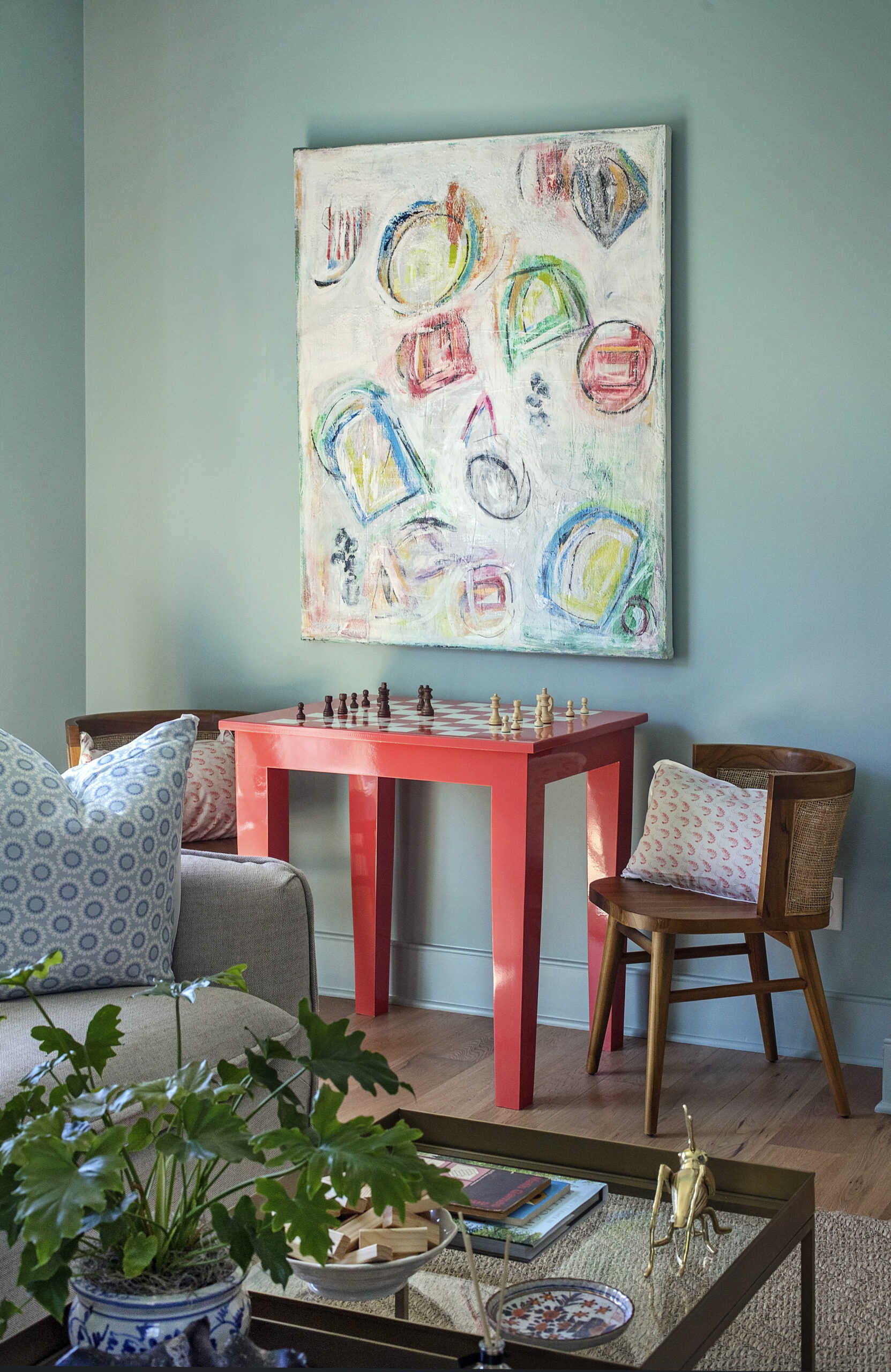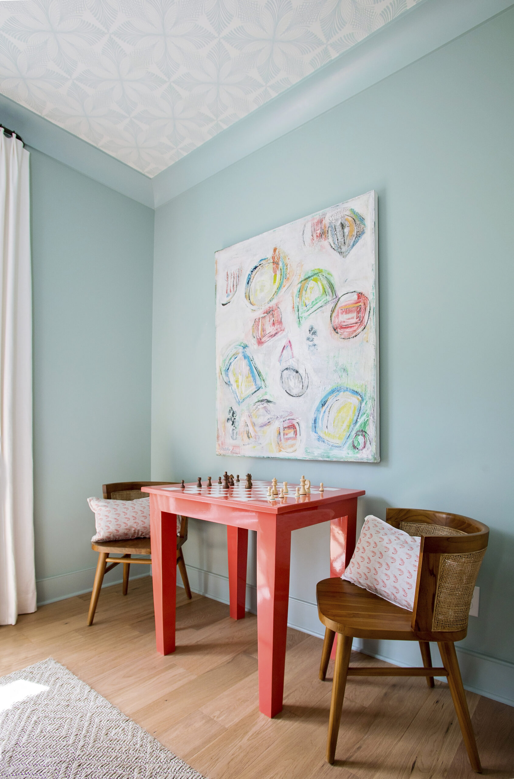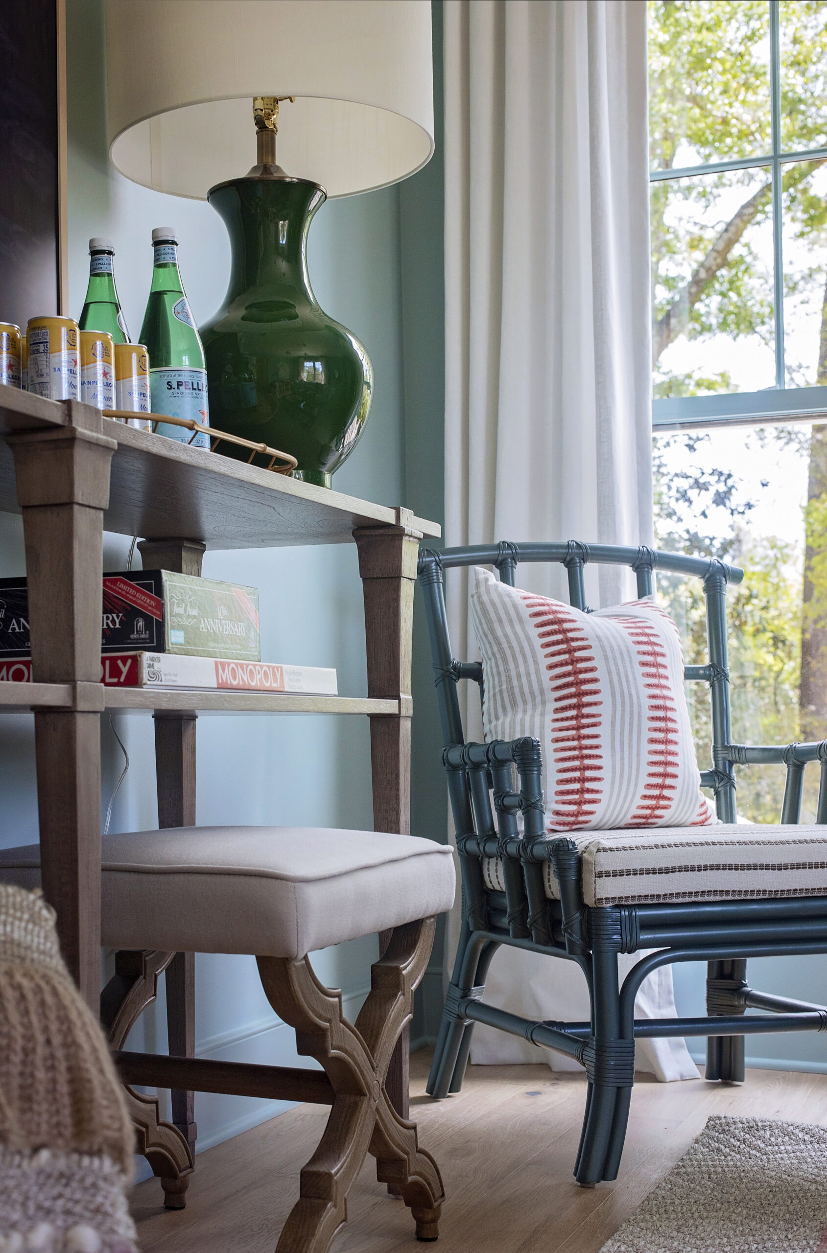 A fun space outside of my traditional staging roll, this room was inspired by the owner’s request to be able to watch football games. The home was built as a gathering space in a central location for his spread out family, so I wanted to include some fun elements for games to be played, memories to be made, and football to be watched.